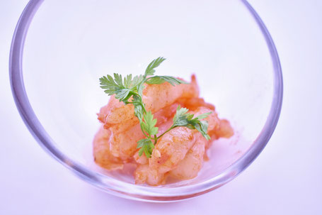 1. 將甜蝦解凍,剪去蝦鬚。